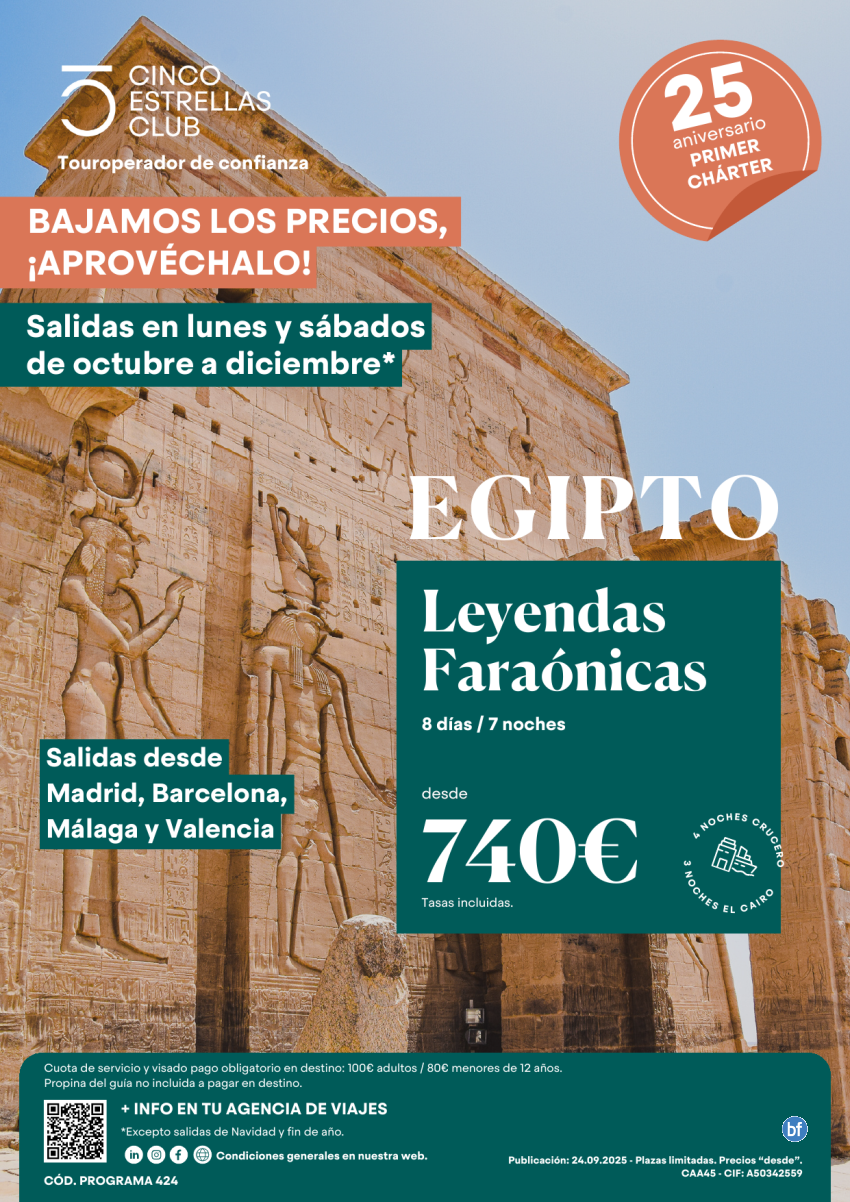 Bajamos lo precios Leyendas Faraónicas 8ds/7ns dsd 740€ sal. lun.ysab. dsd oct -dic dsd Mad,Bcn,Agp,Vlc