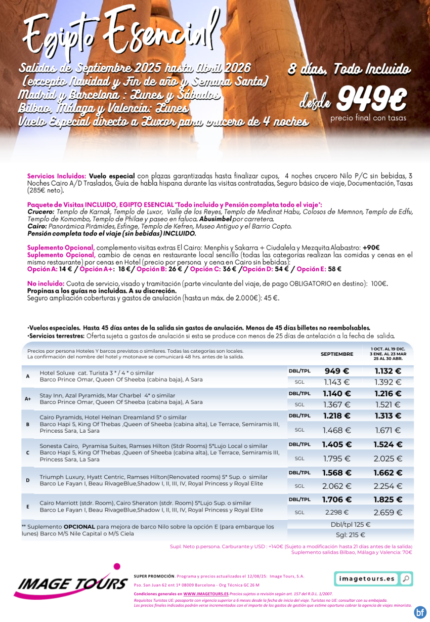 Egipto Esencial hasta abril 2026 ¡8 días con Visitas y plazas garantizadas! desde 949€